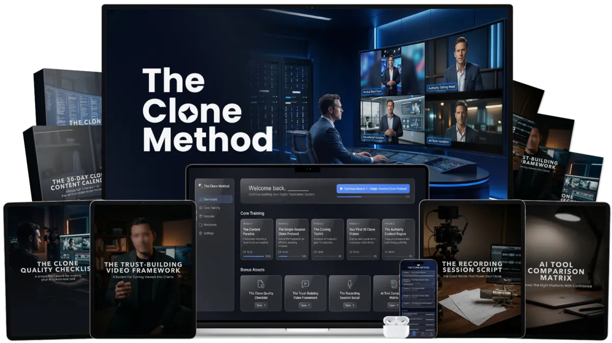 Instant Access to The Clone Method™ Core System Your complete step-by-step framework to build your AI clone, produce content, and scale your output without ever filming again. Selfie protocol, cloning toolkit, video production pipeline, and the Authority Content Engine all included (Value: $497)